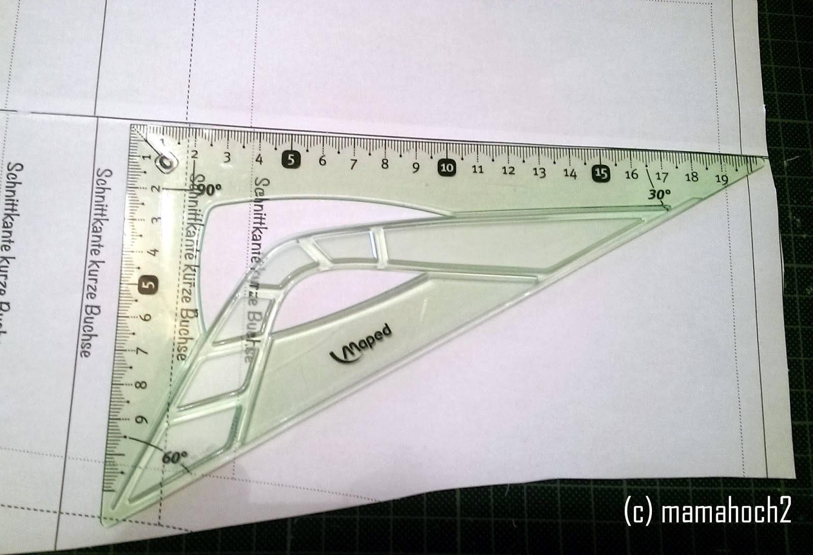 Wenn ihr das auch noch gemacht habt, siehteuerTaschenschnittmuster dann so ungefähr aus und ist damit fertig. Wer sein gutes Schnittmuster nicht zerschneiden will, nimmt nun ein Papier zur Hand und überträgt esdurchabpausen.