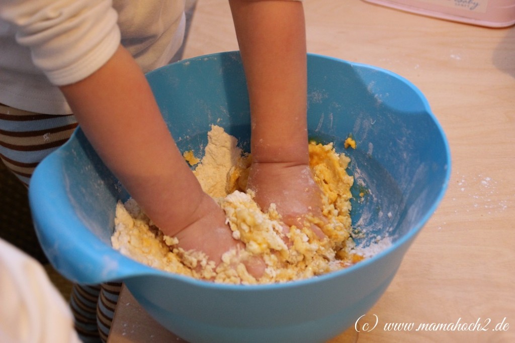 Schon als wir bei Sabrina nach dem Mittagsschlaf ankamen waren Groß P. und Motte total über motiviert. Groß P. konnte es kaum erwarten, dass wir endlich da waren. Also ging es gleich in die Küche zum Teig anfertigen.