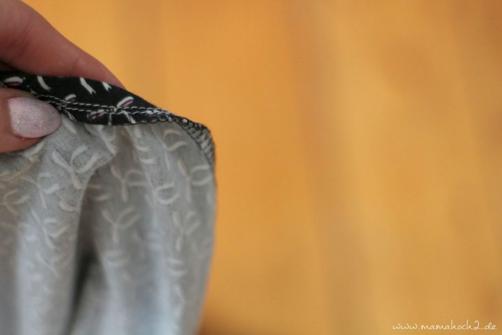 Es sei hier vorweg genommen, dass ich bei einem Modell sogar einfach nur mit der Ovi einmal den Saum runderherum eingefasst habe und dann auf ein weiteres “Umklappen” des Stoffes verzichtet habe.