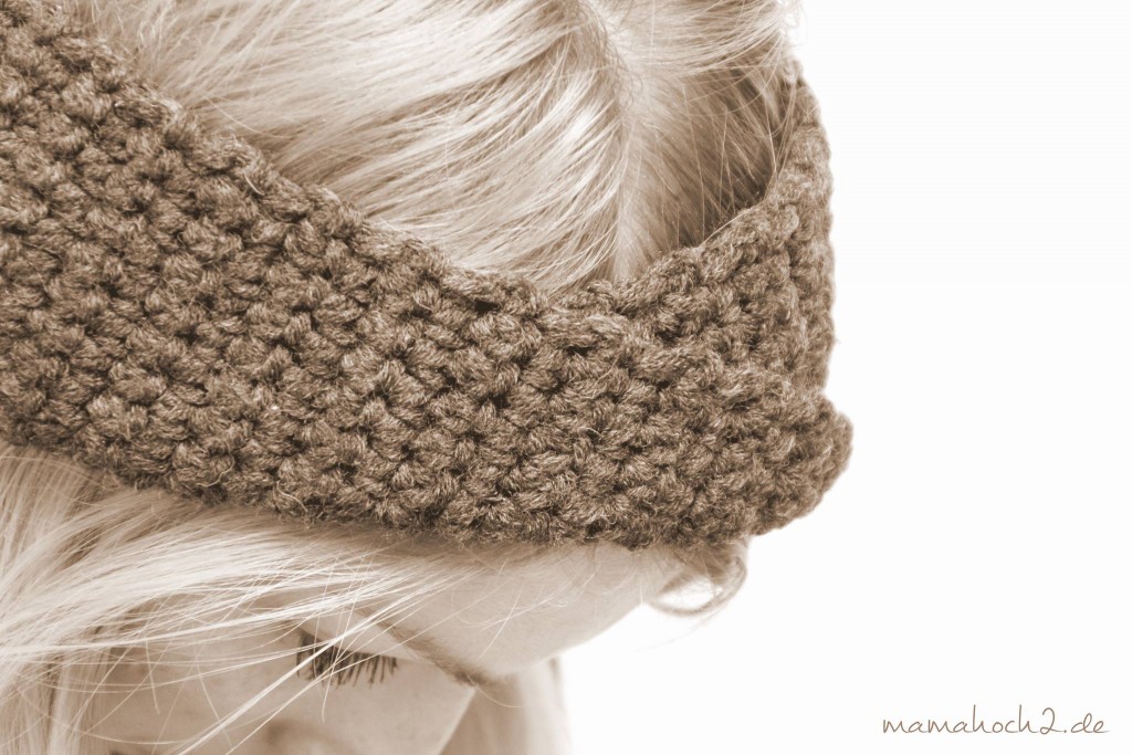 Dann habe ich auch noch ein witziges Stirnband gehäkelt. Da es auch in einer dunklen Farbe ist, scheint es auch zu fast allen zu passen. Doch würde ich jetzt mal ganz frech sagen, dass es doch hauptsächlich für Mädels mit hellen Haaren geeignet. Da sieht man das Stirnband besonders gut.