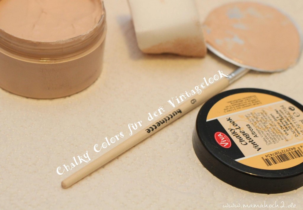 Kreidefarben oder auch Chalky Colors genannt, sind Farbelacke, die auf Kreidebasis hergestellt werden. Durch ihren matten, fast puderigen Look wirken sie schön alt. Zudem kann mit mehreren Schichten übereinander gearbeitet werden. Durch Anschleifen erhält man den gewünschten “used”-Look oder das typische Shabby bzw. Vintage.