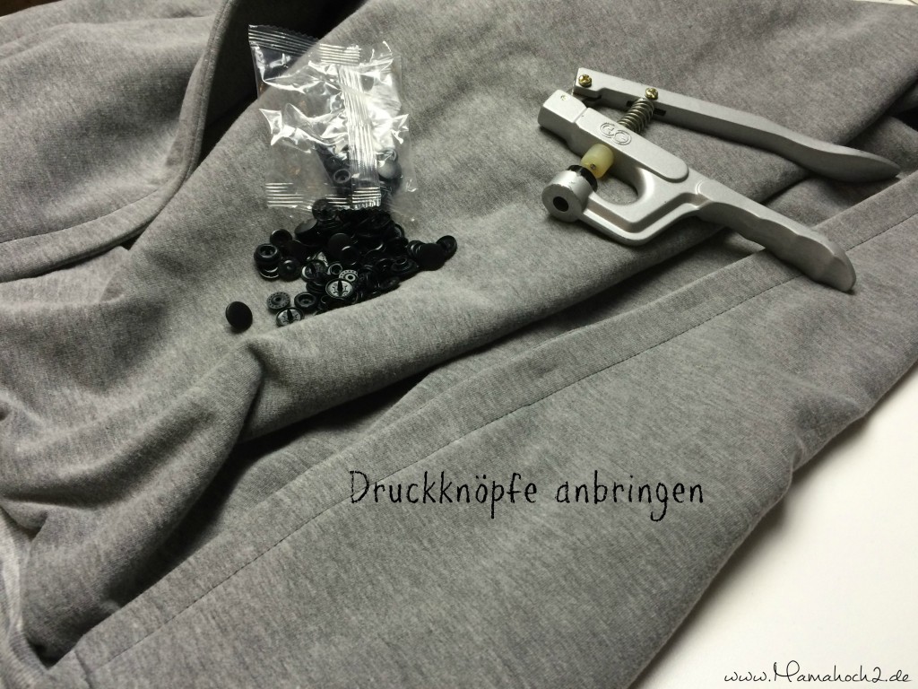 In gleichmäßigen Abständen werden nun die Druckknöpfe angebracht. Ich habe einen Abstand von 7 cm gewählt.