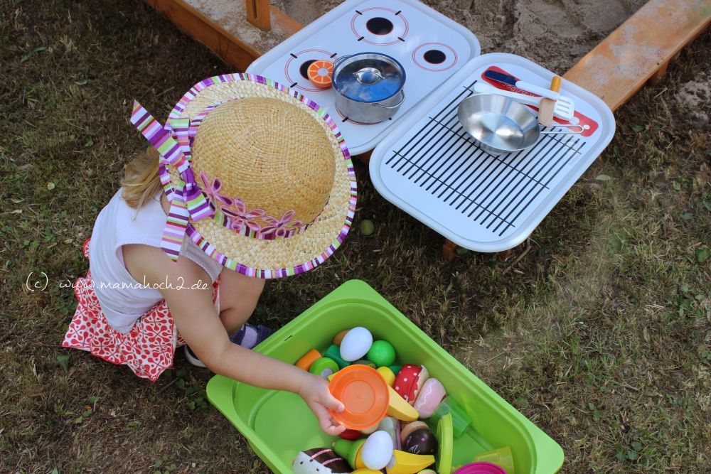 Mit wenig, kann man draußen viel machen. Unsere Kinder lieben sogenannte Matschküchen. In diesem Jahr planen wir beide richtige “Gartenküchen” für die Kids zu bauen, diese stellen wir dann gern gesondert vor. Im Moment bedienen wir uns noch an den Gartengrillsets von Limmaland. Hier wird Brei gekocht und Eis hergestellt. Die Kinder dürfen bei uns sowohl Sand verkochen als auch andere Naturmaterialien. Als Delikatesse des Hauses empfehlen wir übrigens “Drecksuppe” 😉