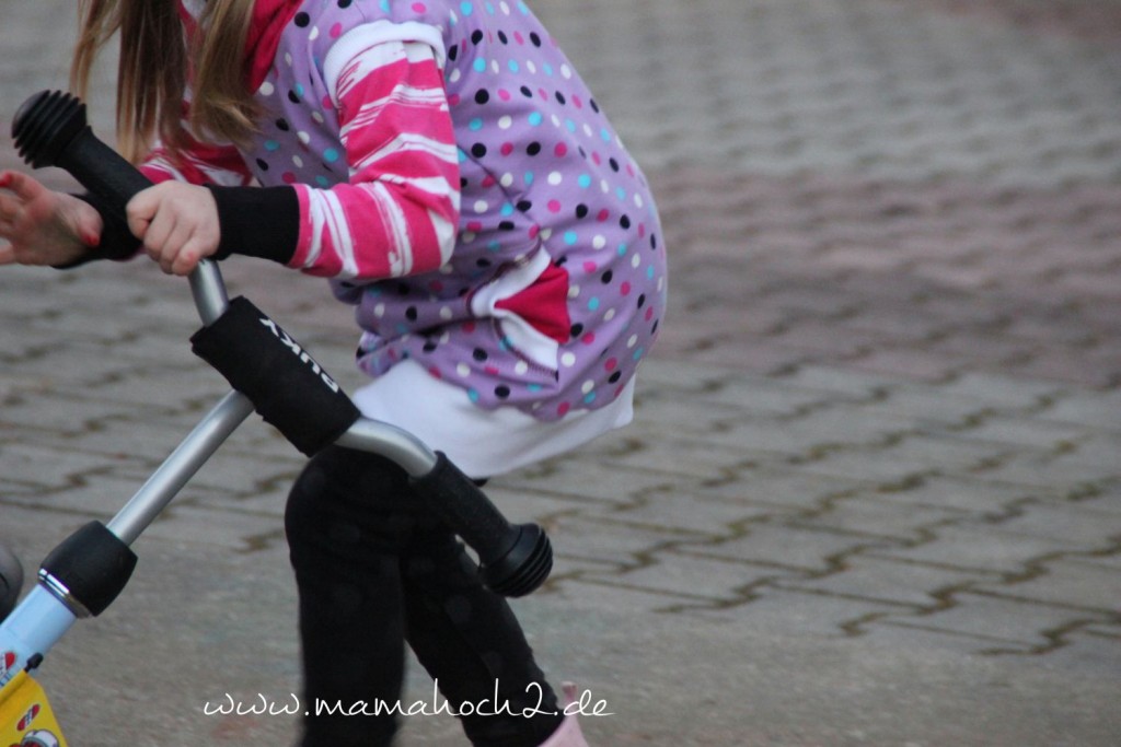 Zur Größenauswahl: Da wir den Pullunder noch über einen Pulli ziehen möchten, empfehle ich dir eine Größe größer zu nehmen. Wir tragen aktuell 104 und nähen eine 110.