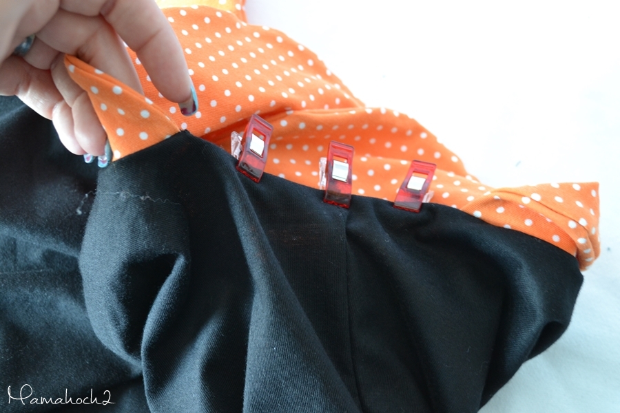 Möchtest du die Unterkante säumen, benutz lieber Nadeln zum feststecken, damit beim festnähen nichts verrutscht.