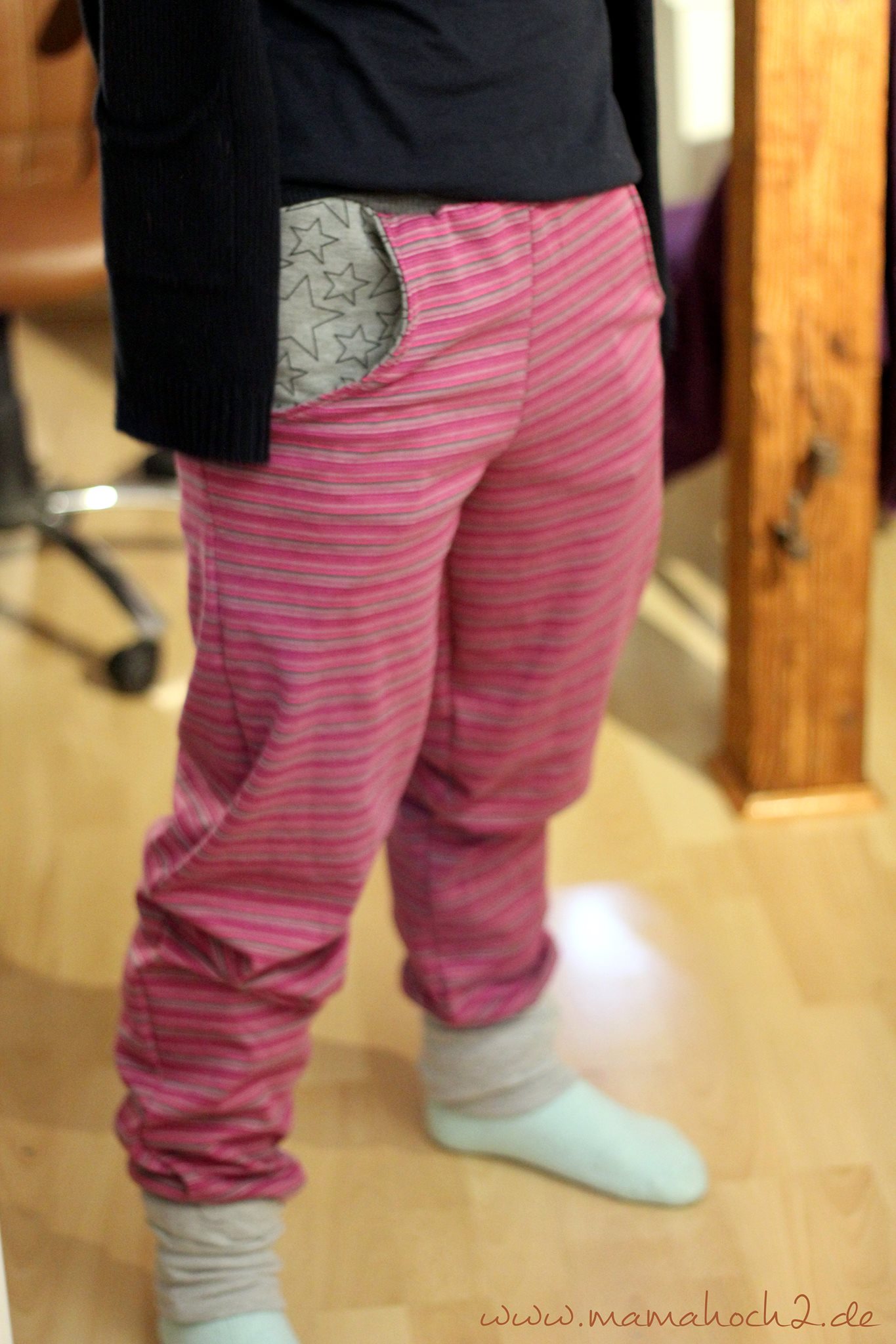 Beim Stoff handelt es sich übrigens mal wieder um einen Sweat von Alles für Selbermacher (Raxn) und die Hose ist aus einem wundervollen kuscheligen Sweat mit weicher Abseite.