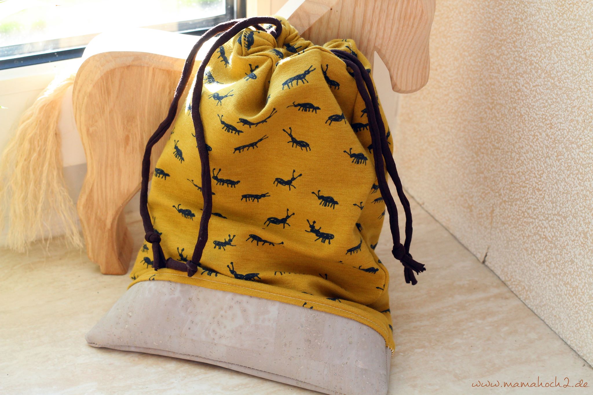 Was Praktisches gab es auch – nämlich für den Kleinen einen kleinen Turnbeutel für den Kindergarten. Ich war einfach mal so frei und habe Kork mit Sweat kombiniert für den Turnbeutel und siehe da: Sowas geht auch prima! Ich mag die Kombination der beiden Stoffe sehr gerne.