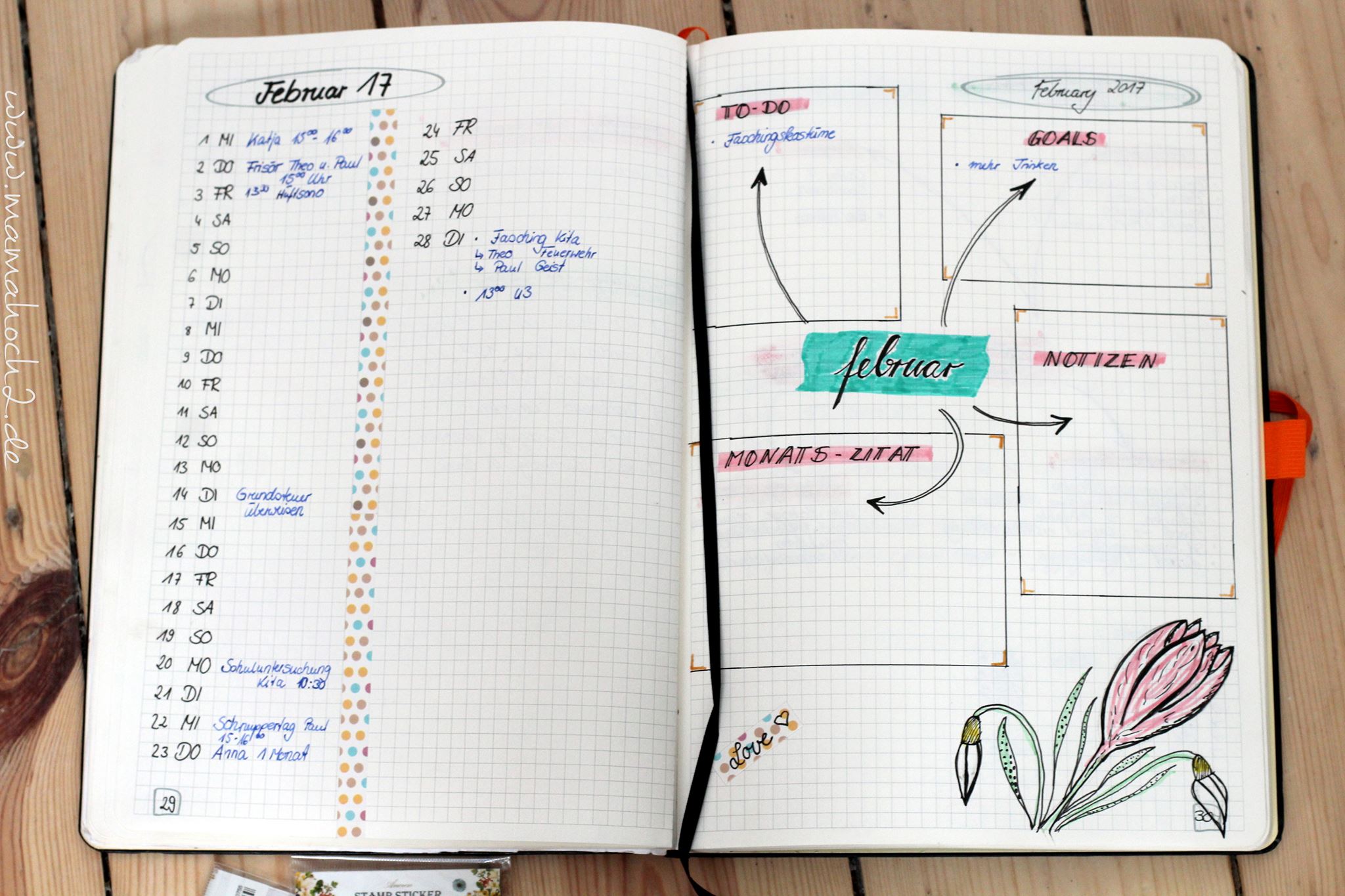 Gerade in der heutigen Zeit hat man als Familie ganz schön viele Aufgaben. Wir sind mittlerweile zu fünft und da kommen ganz schön viele Termine und Sachen zusammen, die im Alltag zu erledigen sind. Wenn ich allein im Februar mal durchrattere (was ohne mein Bullet Journal gar nicht möglich wäre), finden sich hier Termine, wie: U2, U3, Fasching, Schnuppertag Schule, Schuluntersuchung, Geburtstage, diverse To-Do´s wie Elterngeldantrag, Krankenversicherung Anna, Versicherungen abgleichen usw. Diese ganzen Aufgaben kann ich mit dem Bullet Journal perfekt organisieren. Ich setze mir selbst Ziele, vergessen keinen Termin mehr und ich arbeite wesentlich strukturierter Aufgaben ab. Mir passiert es in der Tat nicht mehr, dass ich Wichtiges vergesse, ganz einfach, weil es notiert am Tag X im Bujo verschriftlicht ist. Das ist genau der Grund, warum es für mich unverzichtbar geworden ist, ganz davon abgesehen, dass es auch eine schöne Erinnerung an das jeweilige Jahr ist.