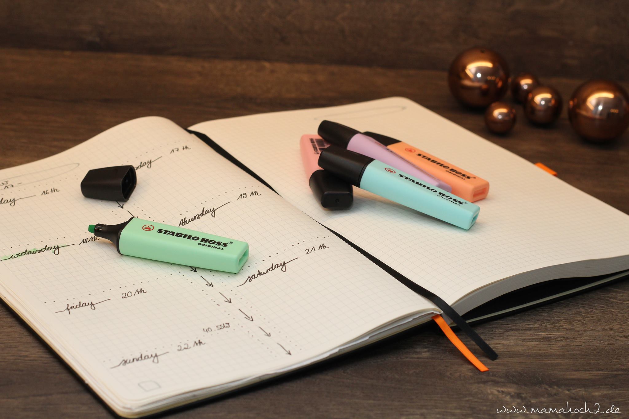 Meine Wochenplanung führe ich je nach Gusto immer mal anders – das ist das tolle am Bullet Journal. Man kann sich ständig neu erfinden und SEIN EIGENES System kreieren.