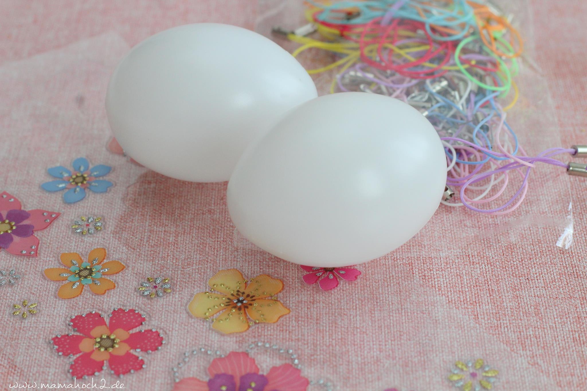 In diesem Fall haben wir Sticker auf die Eier geklebt. Die wunderschönen, transparenten Blütensticker* mit ihrem Glitzeranteil sind perfekt dafür.