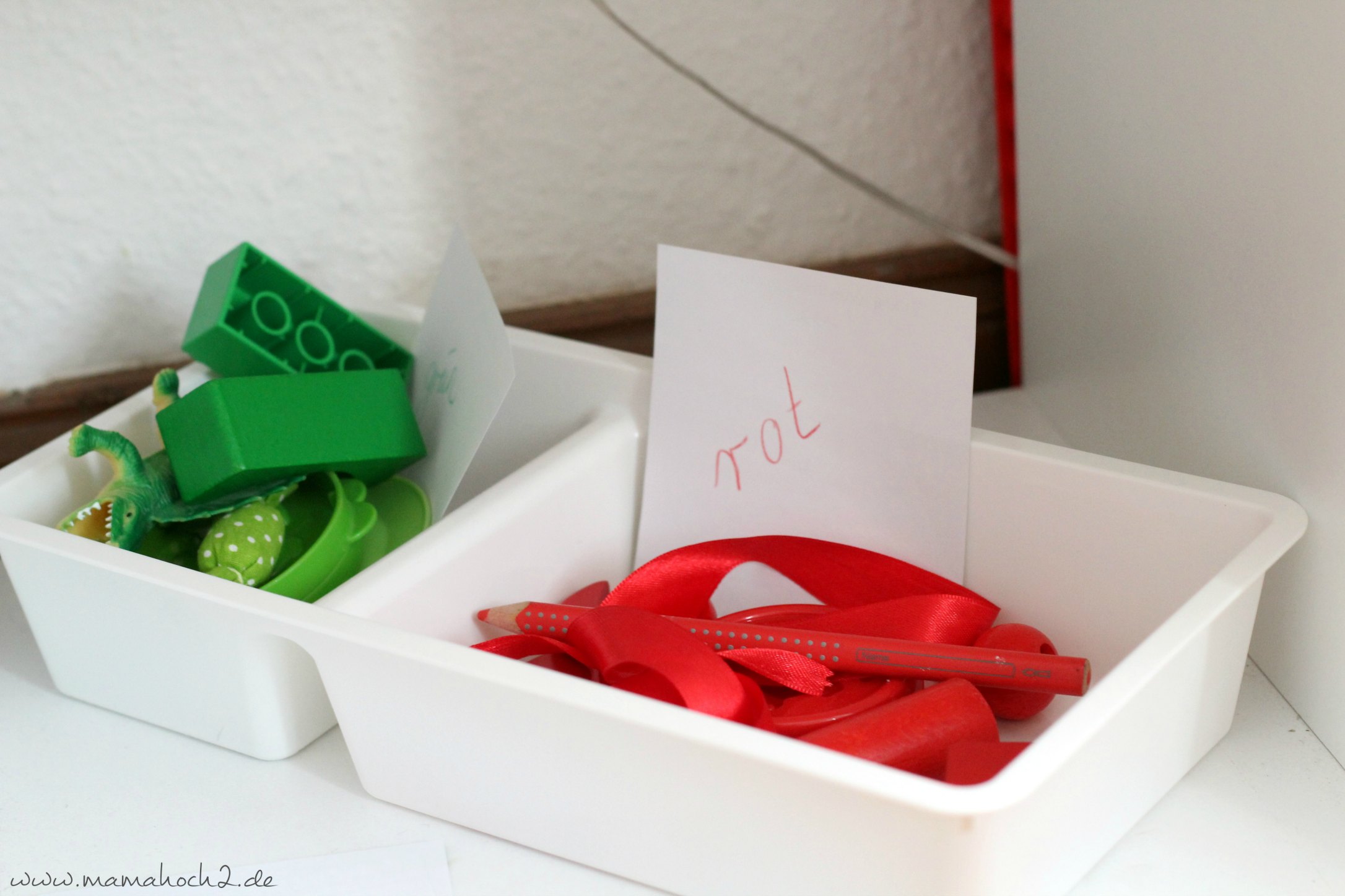 Alle Spielideen haben einen Grundgedanken gemeinsam: Sie ermöglichen ein selbständiges Arbeiten und Beschäftigen und die Kinder bringen sich neues Wissen und Erkenntnisse dabei selbst bei. Viele Übungen lassen sich sogar schon für die Kleinsten umsetzen. So zum Beispiel das “nach Farben sortieren”.