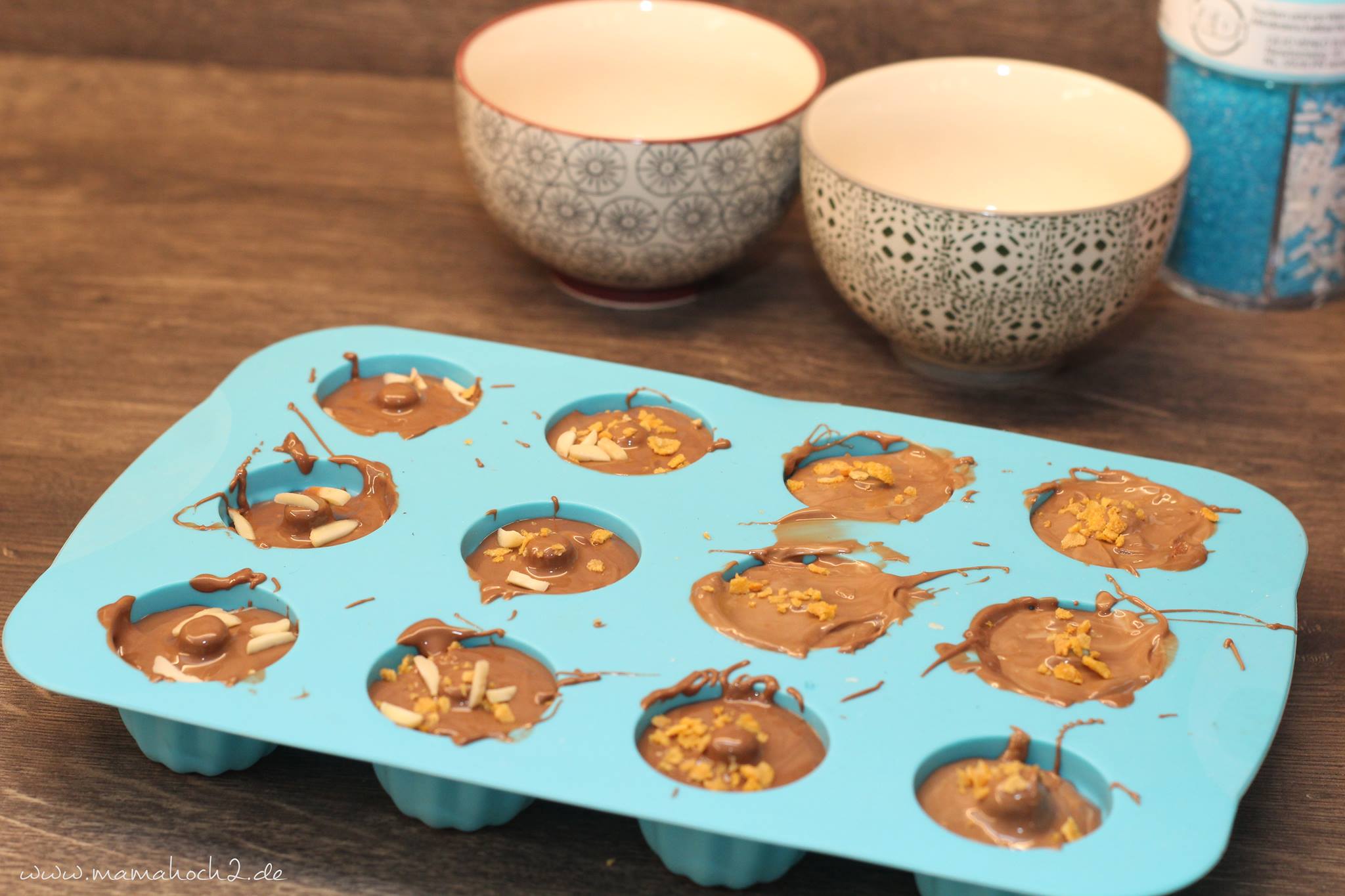 Wir haben die Pralinen eben als Geburtstagsüberraschung für den Papa gemacht. Der freut sich sicher und die Mädels haben auch was davon 🙂