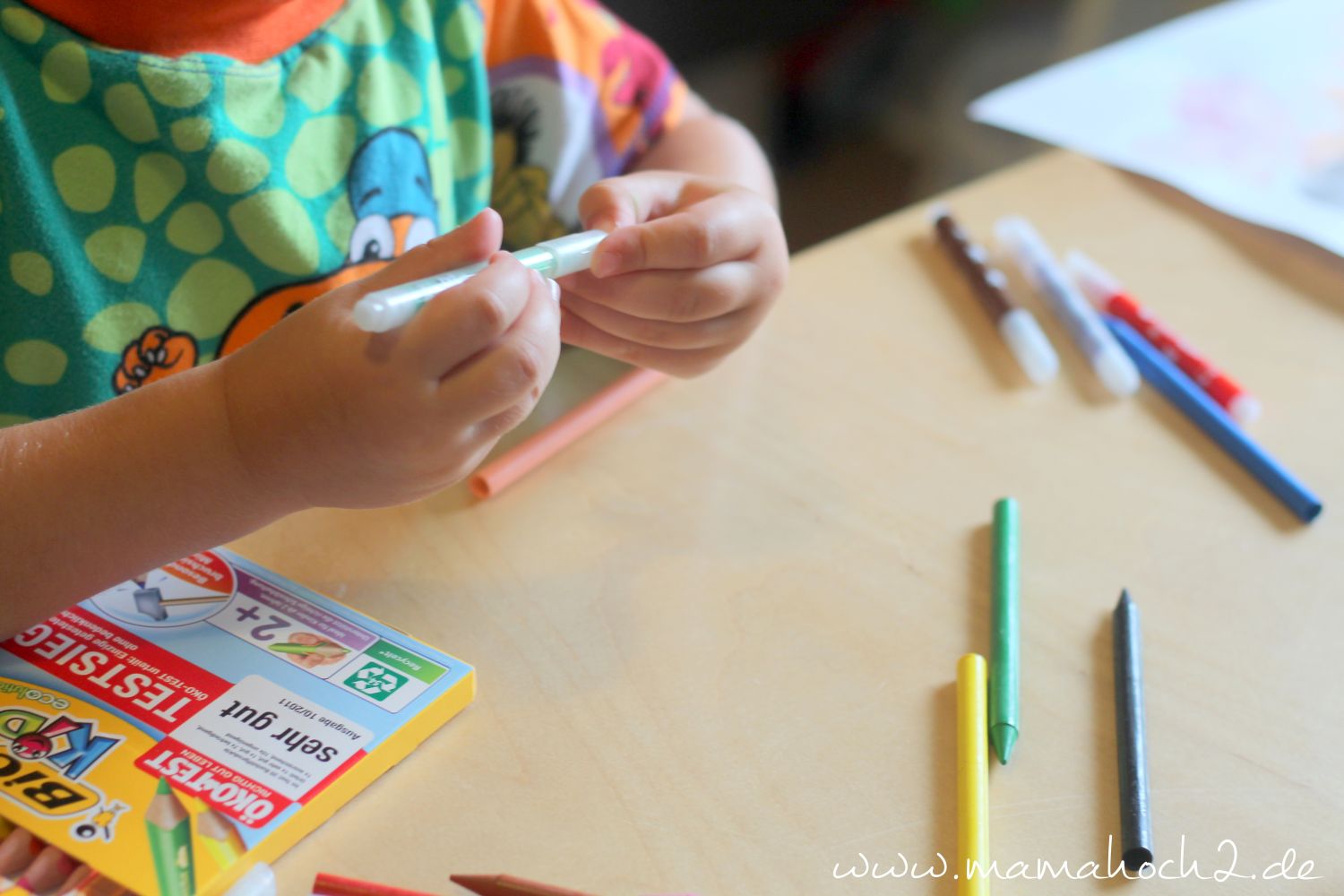 Unser Problem ist nur, das unsere Tochter (7) gerne alles anmalt (Möbel, Wände, Fußboden, Bettwäsche etc.) – gerne abends oder nachts. Wir wussten uns nicht anders zu helfen, als alle Stifte und Farben aus ihrem Zimmer zu verbannen.
