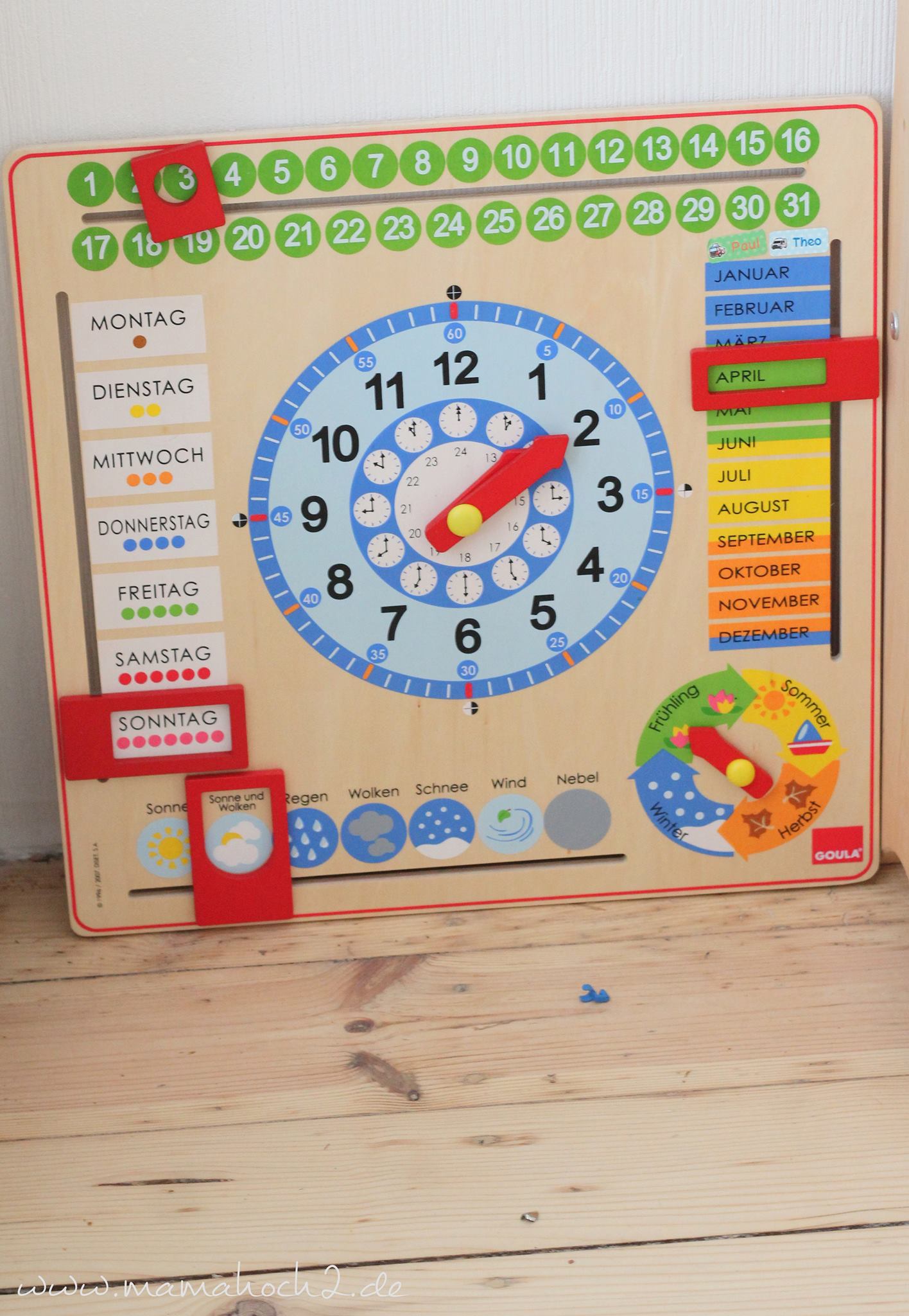 Neben diesen aufgeführten Punkten stand das Thema Jahreszeiten und die Monate zuordnen noch an. Zudem üben wir fortlaufend die Wochentage, weshalb unsere Kalender-Uhr* häufig neben dem Spielbogen steht.