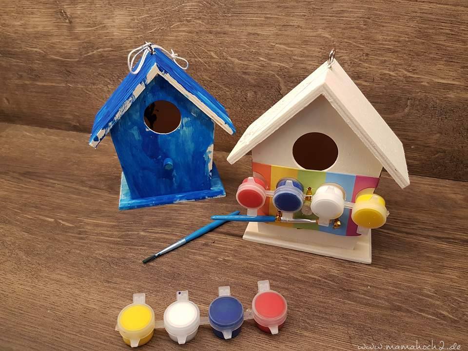 Zudem finden sich hier, wie oben schon beschrieben die Lernkarten mit den Frühblühern. Auch war ein Bestandteil die Holzvogelhäuser samt Farbe, welche wir gemeinsam angemalt haben.