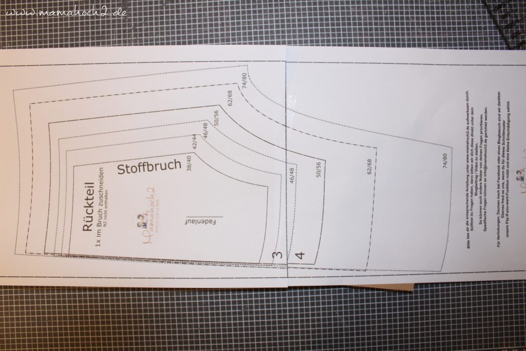 Als erstes nimmst du dir das Rückteil vom Schnittmuster Babypump Rockers und schneidet es auf deine Größe zurecht bzw. ich kopiere es mir immer auf Packpapier, damit ich das Schnittmuster später nochmal für andere Größen benutzen kann.