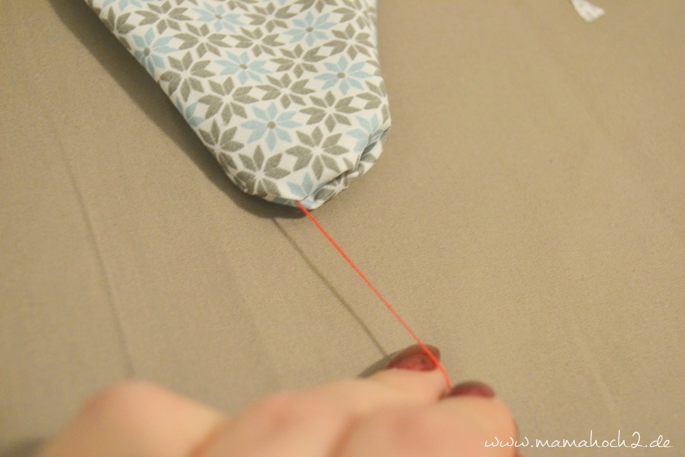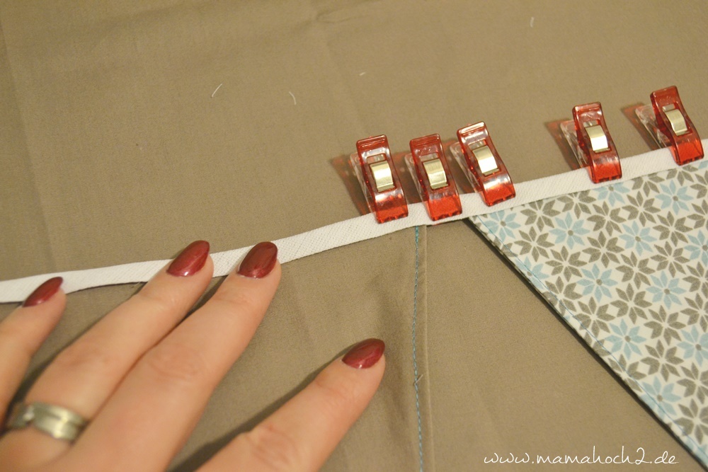 Jetzt nähst du nur noch das Schrägband am offenen Rand zu und damit die Wimpel fest.