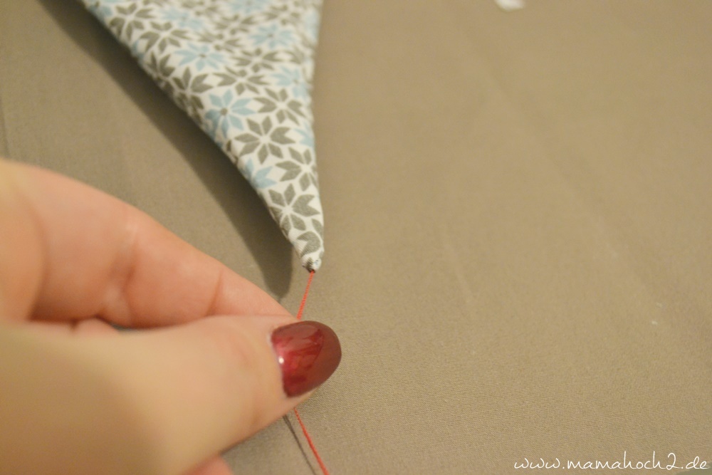 Also habe ich beim nächsten Wimpel den Faden (von dem Eckentipp) einfach noch in der Ecke gelassen und diesen auch noch zusätzlich als “Abstepphilfe” benutzt.
