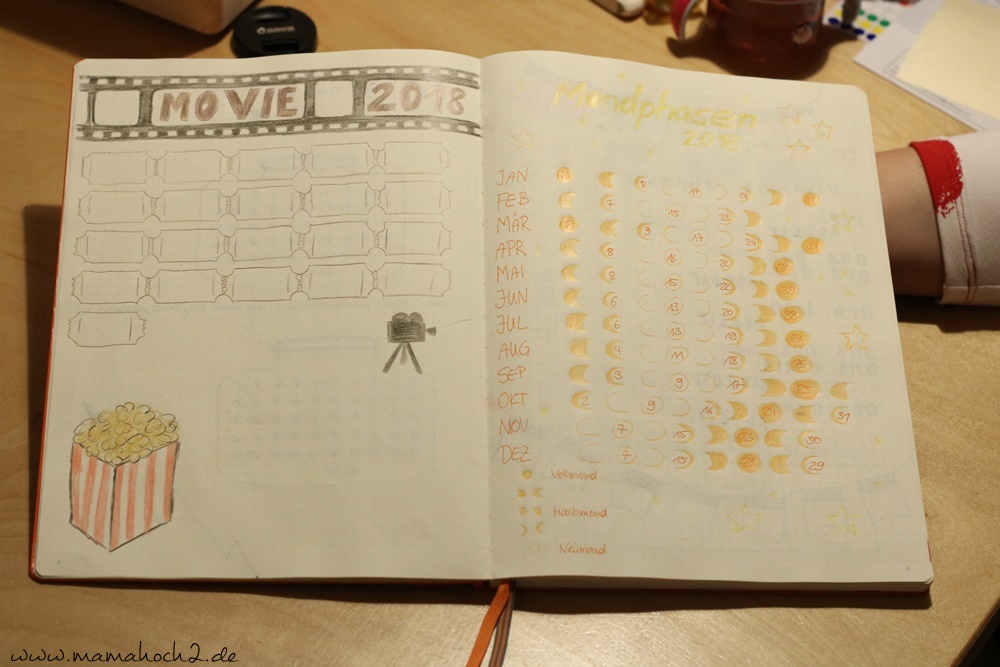 Ich selber hatte viele Jahre auch die unterschiedlichsten Kalender. Die letzten zwei Jahre hatte ich z.B. den Kalender von Mamahoch2 zum selber drucken. Das kommt schon ein Stück an ein Bullet Journal ran. Doch auch da haben mir immer wieder ein paar Sachen gefehlt, die ich dann zusätzlich gemalt habe. Doch einen Kalender, der aus was gedruckten bestand und noch dazu ein paar gemalten Sachen, war unterm Strich doch nicht so meins. Also habe ich mich dieses Jahr auch für ein Bullet Journal entschieden. So kann man einfach alles genau so gestalten, wie man es braucht und so gerne möchte.
