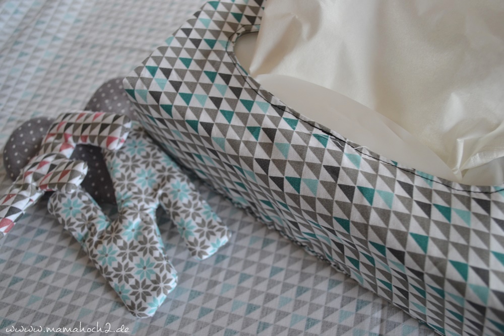 Kaufst du auch immer wieder die gleiche Marke von Taschentuchboxen? Wenn du jetzt nickend vor dem Beitrag sitzt, dann habe ich heute genau die richtige Anleitung für dich. Ich nähe einen Überzug für eine Taschentuchbox. Gerade am Wickeltisch kann man nicht genug trockene Tücher bereit liegen haben und für diesen Zweck habe ich auch wieder zu meinem tollen Lieblings-Baumwollstoff von Zierstoff gegriffen.