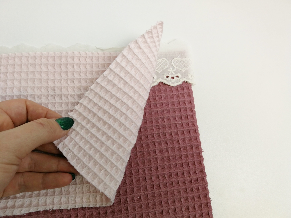 Wende die einzelnen Teile und zwar so, dass die Außenstoffe außen sind.