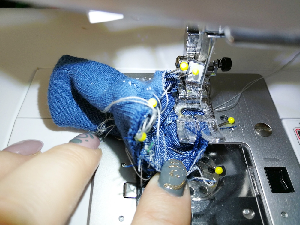 Schließe die Bündchen jeweils in der Höhe mit einem geraden Stich an deiner Nähmaschine.