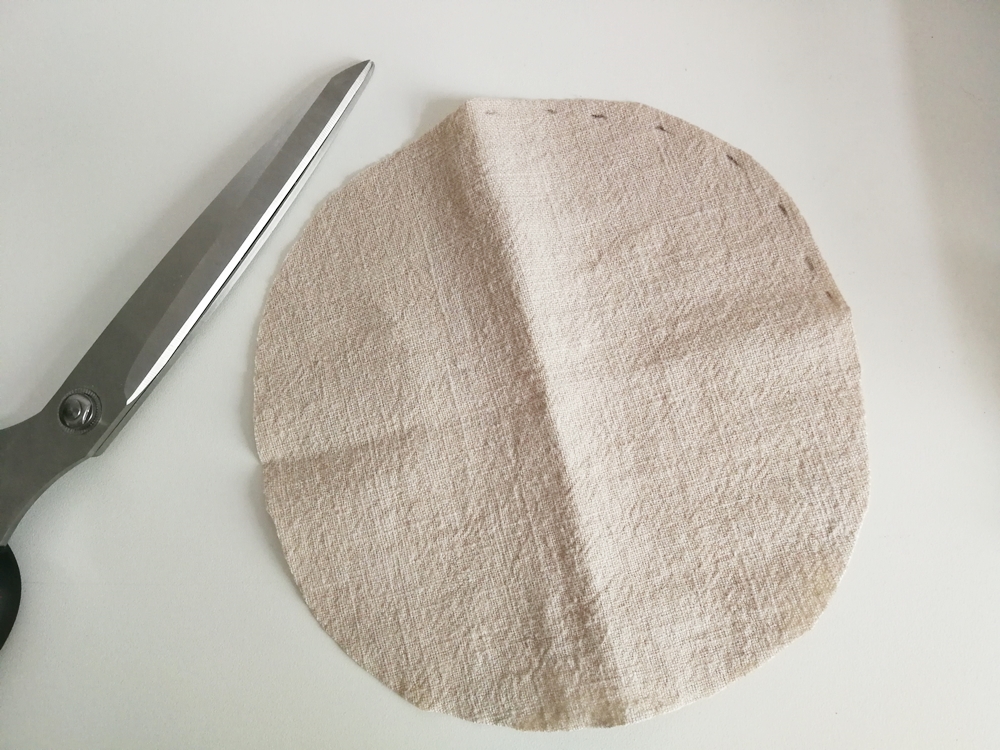 Schneide nun die Markierung entlang und wenn du jetzt den Stoff auseinander faltest, hast du einen gleichmäßigen Kreis zugeschnitten.
