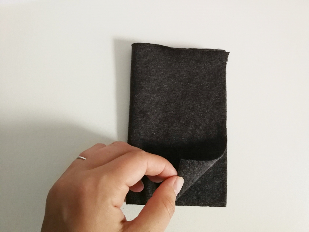 Lege dein Bündchen links auf links der Länge nach zusammen und erkenne so den richtigen Sitz für dein Knopf- bzw. Kordelloch.