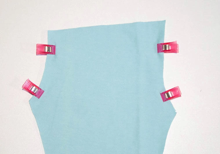 Schlage den Saum 1,5cm nach innen um und fixiere ihn mit Stoffklammern oder Stecknadeln.